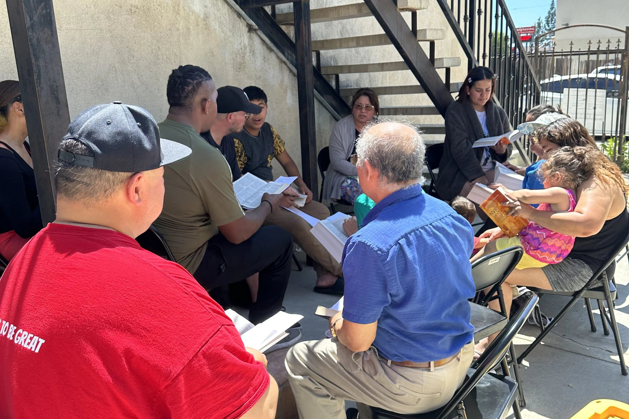 We meet in motels in Sylmar and San Fernando in teams to go door to door giving away lunches, praying for and inviting residents to join us for discovery bible studies in the parking lot.